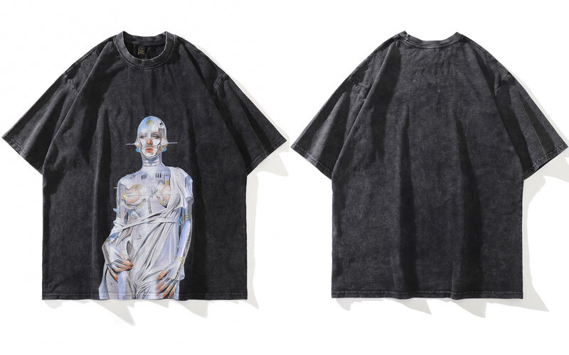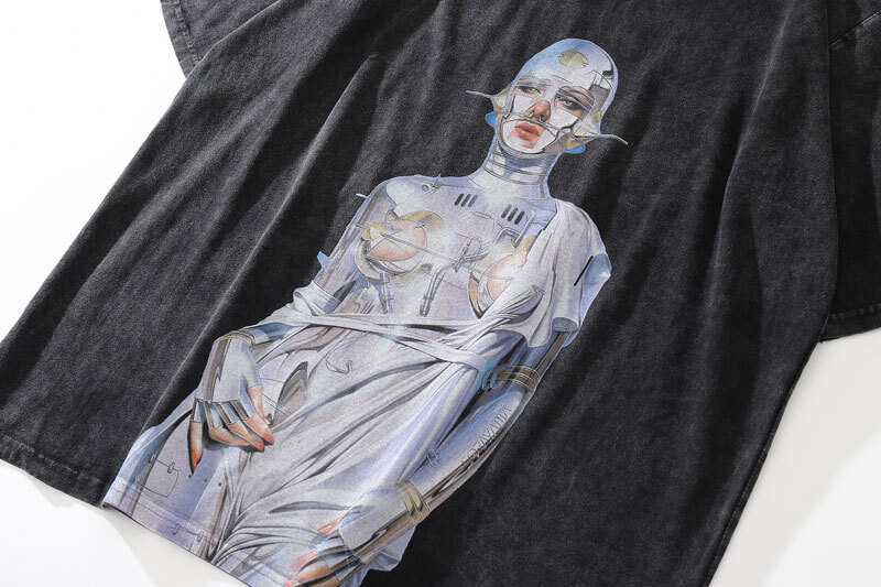 GONTHWID Oversized Robot Graphic T-Shirt Hip Hop Streetwear